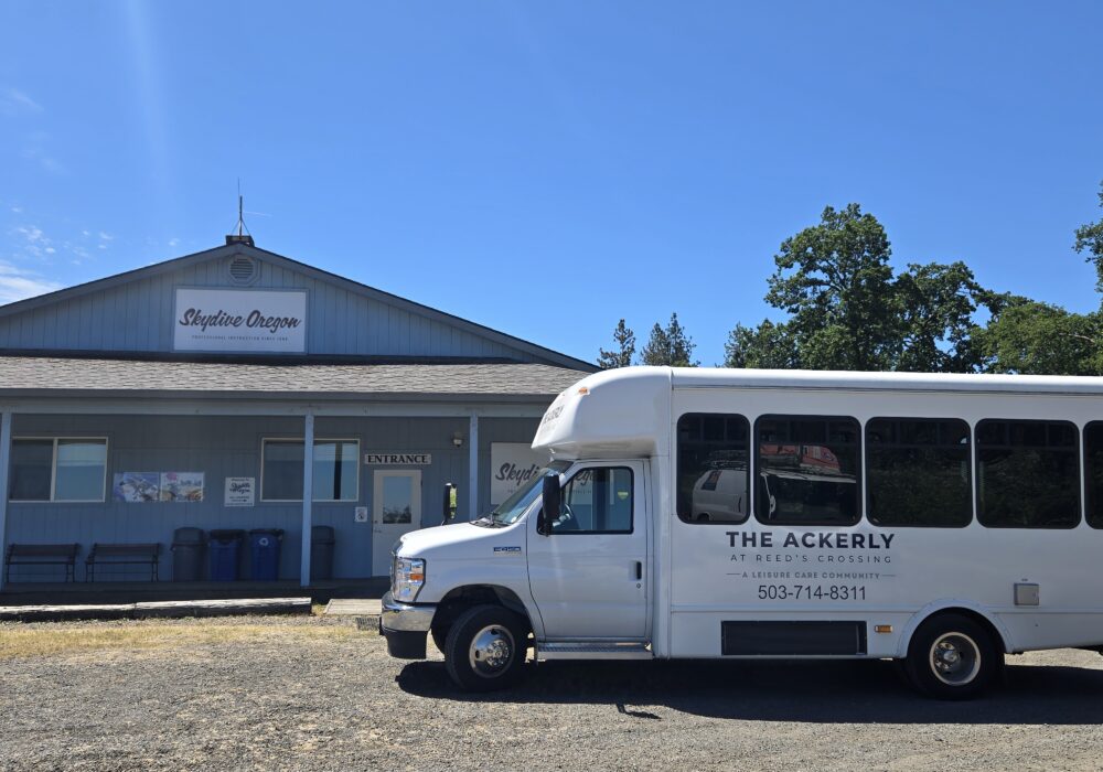The Ackerly at Reed’s Crossing is making sure older adults have the most fulfilling, rewarding, and productive opportunities possible. Residents and team members are encouraged to explore new possibilities, try new things, and share experiences that bring people together. That philosophy was recently brought to life (and to the skies!) with a skydiving adventure that reminded everyone that joy and adventure have no age limit.