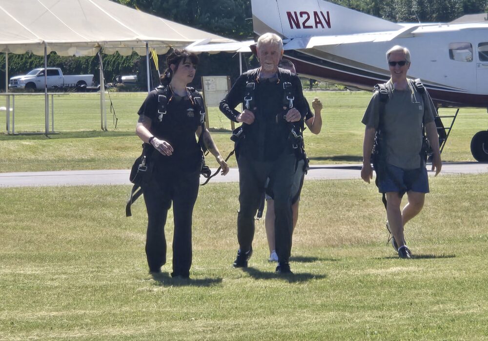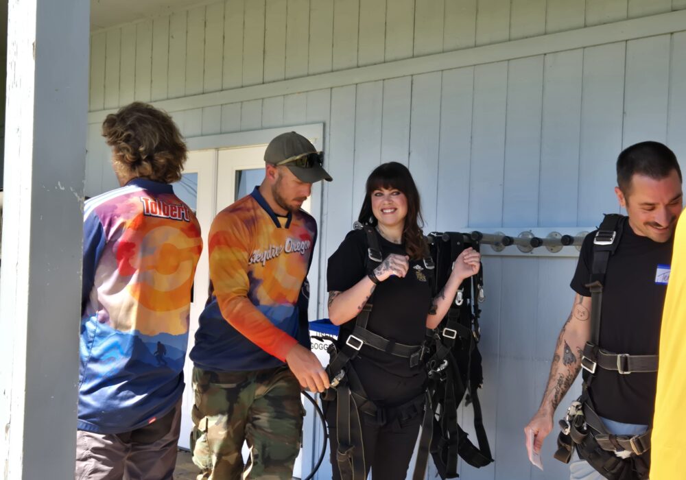 The group had to reschedule three times while waiting for safe jump conditions, but on May 30, 2025, the wait paid off. The morning was cool, the sky stretched clear and blue, and excitement filled the air as the group drove to Skydive Oregon’s private airfield in Molalla.